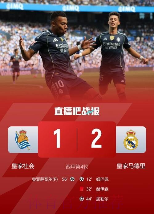 西甲-十人皇马2-1皇社 姆巴佩传射建功赫伊森红牌